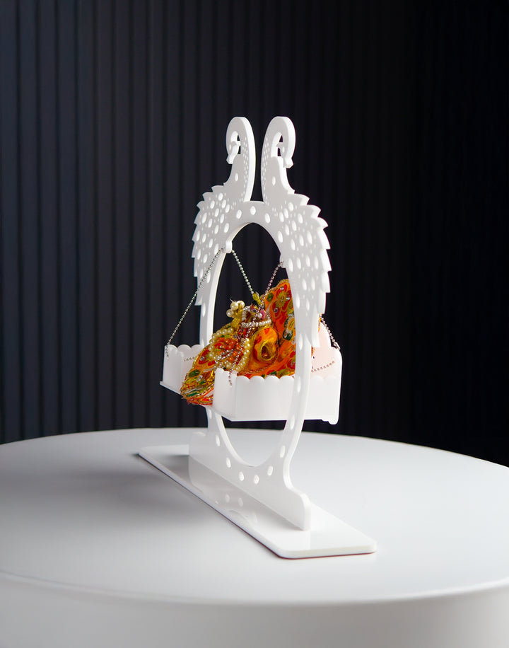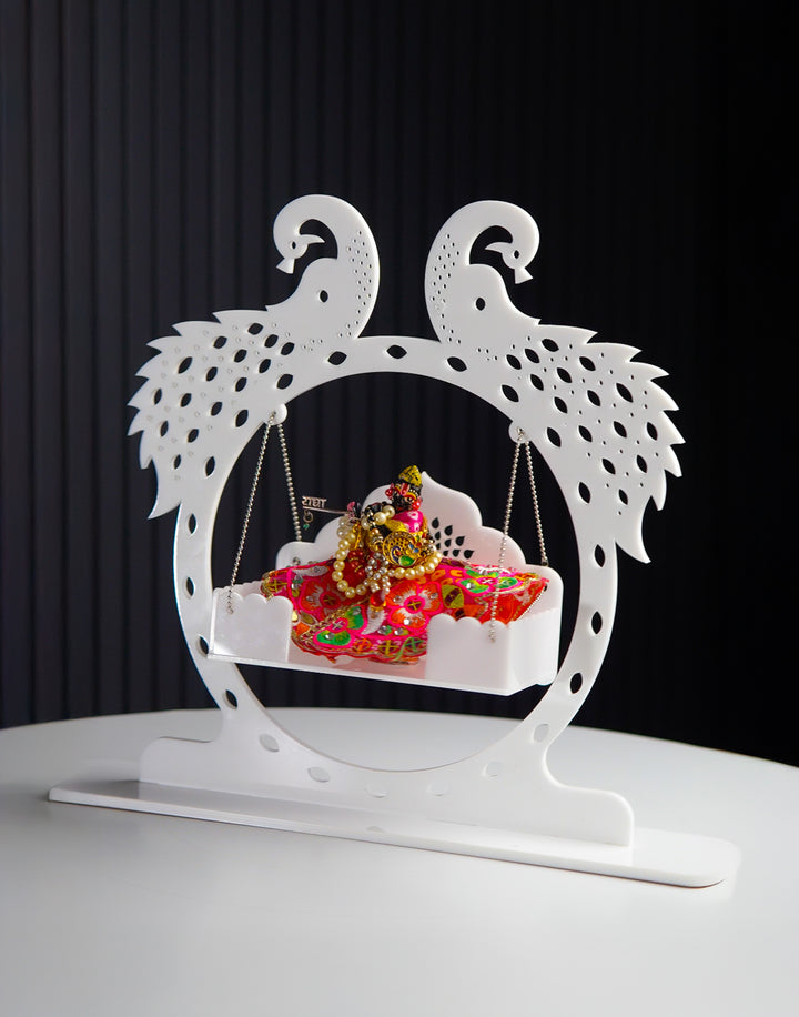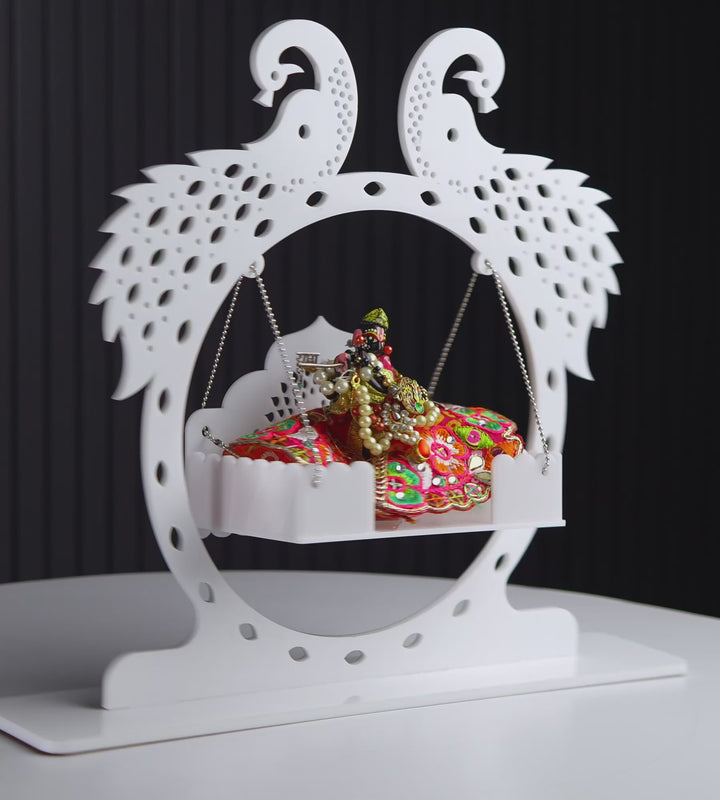 Bring home the divine charm and serenity of Radha Krishna with this stunning premium acrylic decor piece. Featuring the timeless duo seated gracefully on a swing (jhula), this artwork exudes love, peace, and elegance, making it a perfect addition to your home or office decor.