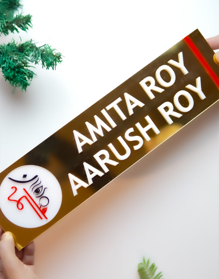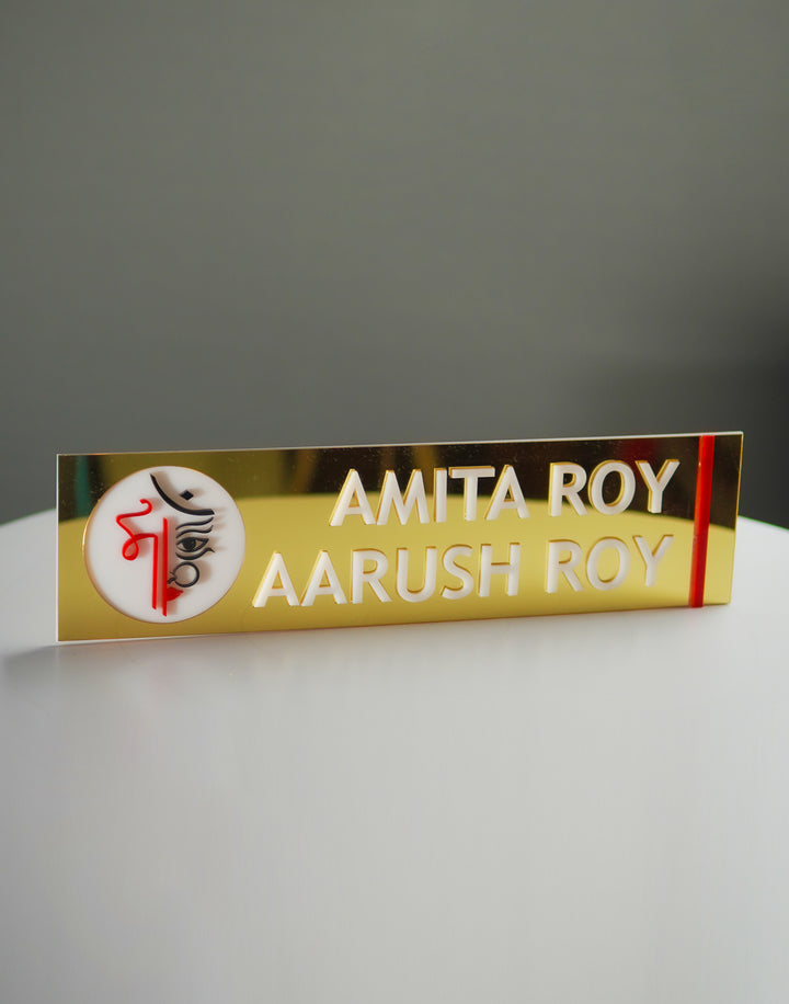 Add a touch of elegance to your entrance with our Premium Dual-Tone Gold & White Nameplate. Designed with a perfect balance of luxury and simplicity, this nameplate features a sleek white base accented with rich gold details. Crafted from high-quality materials and finished with precision, it brings a modern yet royal charm to your home or office. Personalize it with your name or logo to create a lasting first impression.