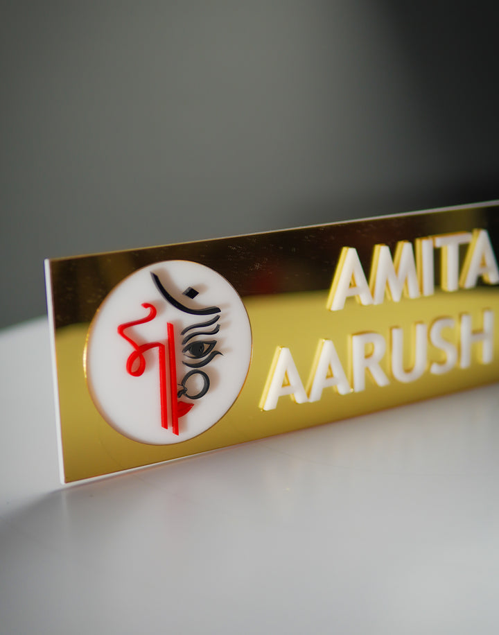 Premium Dual-Tone Gold & White Nameplate