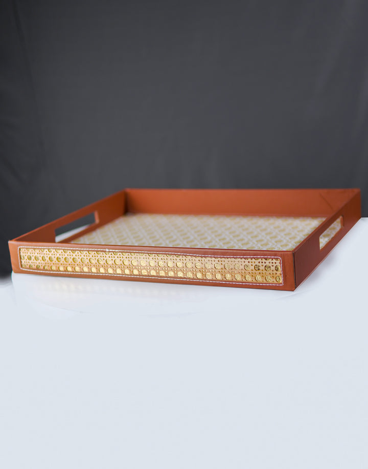 Add a touch of luxury to your serving experience with our Premium Leatherette MDF Tray. Expertly crafted with a sturdy MDF base and wrapped in high-quality leatherette, this tray combines elegance with practicality. The rich, textured finish exudes sophistication, making it perfect for both modern and traditional settings.